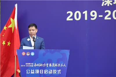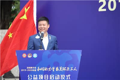 李舟主席介绍项目背景,并向辛苦付出的环卫工人致以崇高的敬意和诚挚的问候。他表示,深圳狮子会于2017年发起“最美环卫工人”公益项目,并逐步将其打造为深圳狮子会品牌项目;截至目前,深圳狮子会已为关爱环卫工人项目累计投入服务经费200万元以上,受益环卫工达1万人以上。