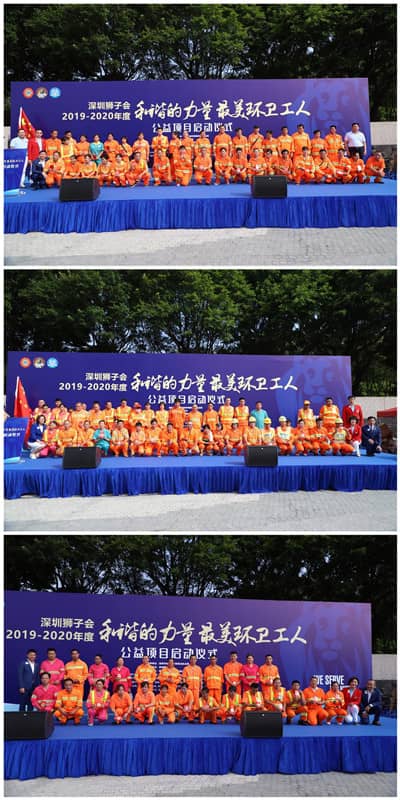环卫工人是“马路天使”,是“城市美容师”,是美好生活的创造者、守护者。为迎接第26个环卫工人节,2019年10月26日,深圳狮子会2019-2020年度“和谐的力量·最美环卫工人”社区主题活动在深圳市莲花山公园改革开放纪念园顺利启动。当天下午,深圳狮子会在西乡大众广场举行第二届环卫工人趣味运动会,并在盐田区沿港社区邀请环卫工人共同品尝大盆菜,服务经费58.4万元。本年度还将在罗湖区、光明新区、宝安区松岗街道等地开展关爱环卫工人服务,项目总服务经费近100万元。