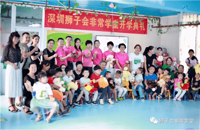 2019年9月3日,开学啦!开学啦!深圳狮子会里程服务队在龙岗区横岗街道旱塘一路2号举行非常学堂(横岗教学点)开学典礼,陪同脑伤儿童上课、参与课堂游戏活动,向孩子们捐赠小礼物,服务经费500元。