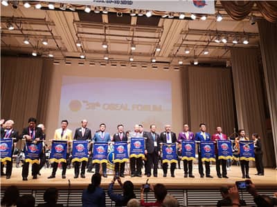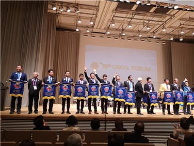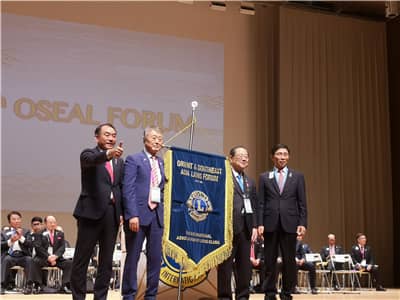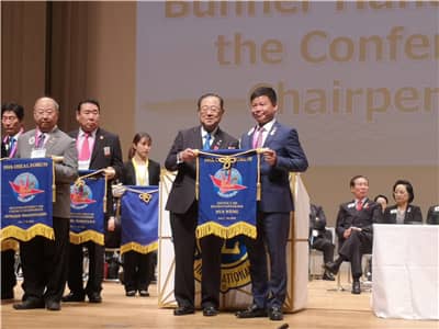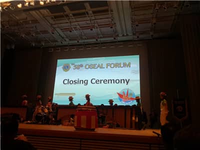 闭幕式上,年会主席寺越慎一向参加本届年会的国家和地区颁授纪念旗,并将国际狮子会东南亚年会主办方旗帜移交给第59届东南亚年会主席玄成泰。