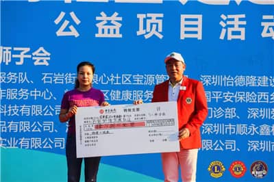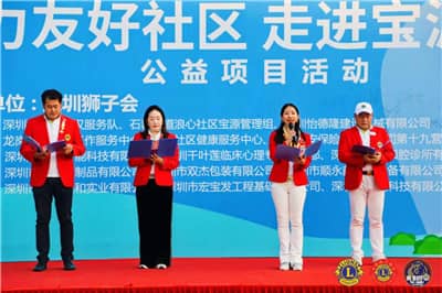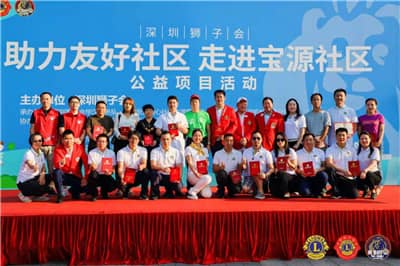 2019年11月9日,深圳狮子会华汉服务队在宝安区宝源社区料坑露天广场开展关爱活动,为社区捐赠500本图书绘本、1个图书角书架及1年期线上教育课程,向孤寡老人捐赠慰问金及食用油等物资,向社区居民提供血压检查、牙齿义诊、心理咨询等服务,服务经费5万元。