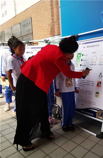 活动前,狮友们提前赶到学校安置宣传展板。同学们对宣传板上的内容非常感兴趣,狮友们为学生们解答疑惑,让他们了解爱护眼睛的重要性并掌握用眼卫生知识。