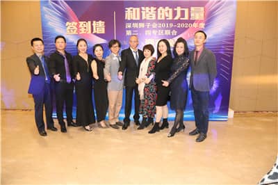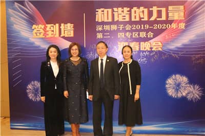 2019年12月31日,深圳狮子会2019-2020年度第二、四专区在福田区海曙凯丰酒店联合举办2020迎春晚会。中国狮子联会驻深圳代表、深圳狮子会党支部第一书记李卫华,中国狮子联会前监事长、深圳狮子会前会长苏泽然,深圳狮子会上届会长马敏、第二副会长郭永勇、财务长彭道坚、纠察长杜鹏、副秘书长郑和华、第二专区主席李舟、第四专区主席陈光喜、第五专区主席茹春旭,分区主席方士雷、杨水金、易书敏、朱峰、张哲勤、李莉、唐全慧、李晓峰、黄晓如、池铭辉、左红义、陈冬梅、刘其海等领导嘉宾及第二、四专区服务队狮友共200余人出席晚会。晚会由李舟、陈光喜任大会主席,朱峰任总统筹,由孟春主持。