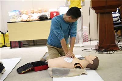 培训中,老师们全方位地向参训人员普及急救常知识。在人工心肺复苏操作及AED仪器操作中,学员们积极参与实操演练。