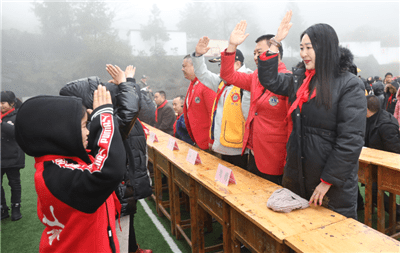 1月7日,重庆秀山特殊教育学校操场上寒风习习,孩子们穿着整齐的校服迎接狮友们的到来,主动打招呼拥抱狮友。