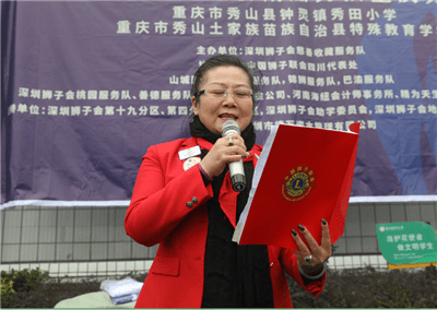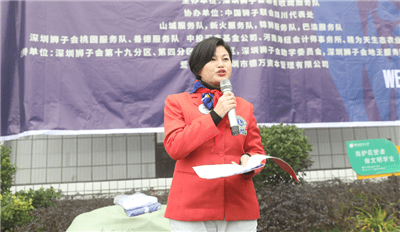 第十九分区主席邓媚心、慈善收藏服务队队长余小平、四川代表处山城服务队李建分别发表讲话,鼓励孩子们积极向上,再接再厉。捐赠20万善款的爱心企业深圳市德万资本管理有限公司董事长王章槐先生讲话。助学项目主席马世哲介绍深圳狮子会捐赠物资。
