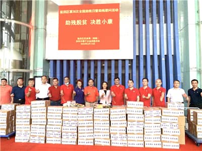2020年5月15日,为迎接“全国助残日”,深圳狮子会盐田服务队在盐田区海景二路盐田区工青妇活动中心大厅开展“温馨工程”助残活动,向700户困难残疾人家庭每户捐赠一份“爱心包”,每份包含湖北香米、香菇、玉米糁、木耳等湖北农副产品各一包,服务经费9万元。