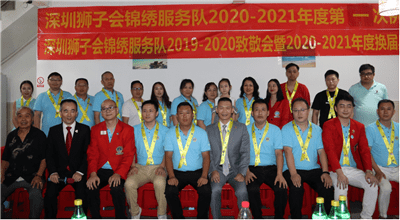 2020年7月17日,深圳狮子会锦绣服务队2020-2021年度换届就职典礼在大鹏西冲海之云客栈举行。深圳狮子会第四分区主席李晓峰,锦绣服务队队长谢天赐、上届队长陈赞生、第一副队长王兴朋、第二副队长王哲、创队队长邱兆军等狮友及狮友家属、爱心人士共42人出席典礼。典礼由王兴朋担任大会主席,由周福辉、盛玉主持。