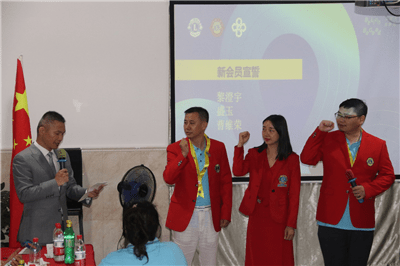 在李晓峰主席的带领下,新一届队长团队成员郑重地作就职承诺,谢天赐队长颁发委任状。