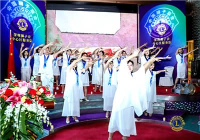 在悠扬唯美的大提琴演奏声中,主持人曹严用他那浑厚且富有磁性的声音,朗诵了原创诗歌——我们一起走。当所有人都沉醉在音乐和诗歌当中,舞台背景屏幕上播放着中心区服务队创队十五年来的回忆影像。此时,中心区服务队的狮友们身穿象征纯洁美好的白色衣裙,手持意味着“星星之火、可以燎原”的蜡烛,缓步走上舞台。一曲《一起走》手语舞拉开了换届就职典礼的帷幕,温情的旋律久久回荡在会场上空。