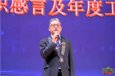 卢志强会长致辞,感谢过去一年里,在创队队长王波的支持下,上步狮友在王宝才队长的带领下取得的令人满意、瞩目的成绩。他代表深圳狮子会对上步服务队的卓越表现表示感谢。他相信,上步服务队在曾力队长的带领下,在全队狮友的一如既往的支持下,将越来越精彩。