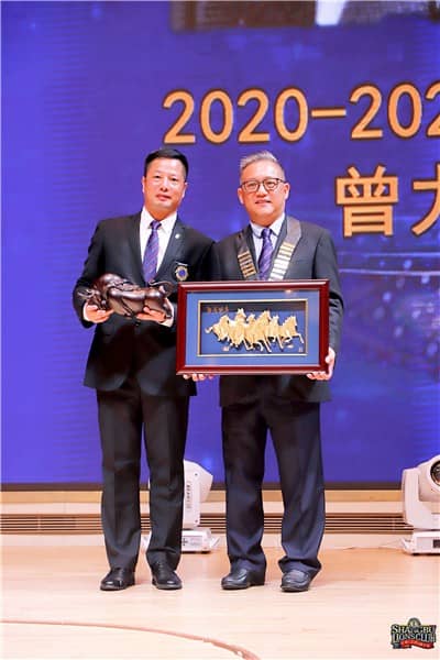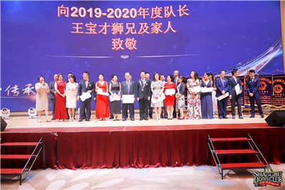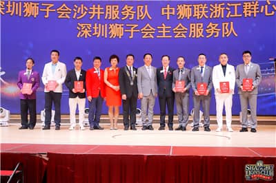 国际狮子会理事张国筠致辞,感谢王宝才队长在过去的一年中做出的贡献,肯定上步服务队是全国、深圳最好的服务队之一。他祝贺上步服务队新一届队长团队成员就职,并对上步服务队发展给予了厚望。同时,他向王波、陈少华、佟昕颁发了国际总会长奖状,祝福他们就像服务队的名字一样更上一步。
