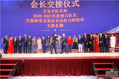 在全体狮友嘉宾的共同见证下,王宝才向曾力移交了绶带和权杖,双方互赠礼物。