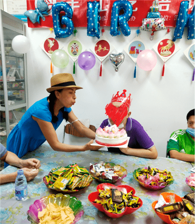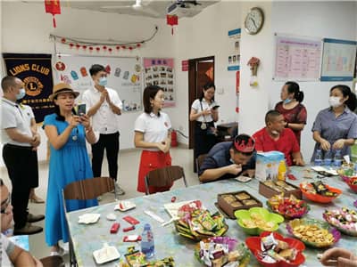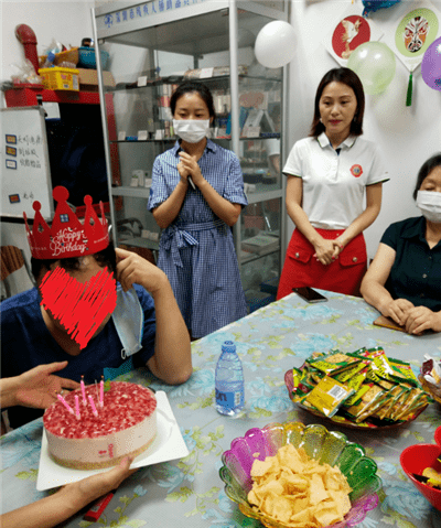活动当天,恰逢园岭街道职康中心为当季度寿星组织生日庆祝宴。在杨老师的主持下,在场的狮友们和园岭街道职康中心的残障人士一边鼓掌一边唱着生日歌,并与寿星们分享幸福的蛋糕。大家一起过了一个非常有意义的生日会。