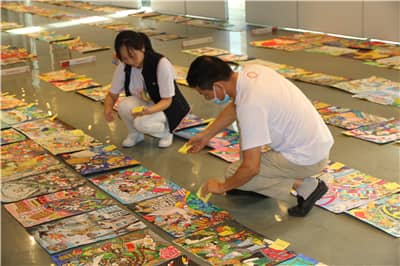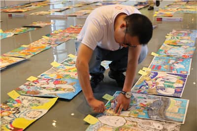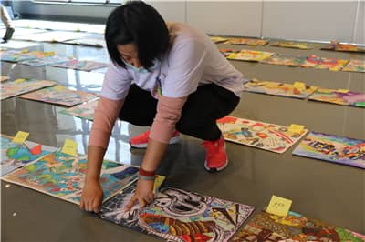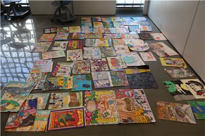 当天上午,狮友们早早来到太子湾学校中学部对参选作品进行分组,并逐一贴上标号。受疫情影响,本次和平海报作品征集活动时间紧、任务重,和平海报工作小组经多方商议及研究,采用高质、高效的方式收集作品,邀请资深美术界专家在多个机构及学校进行和平海报主题宣讲,短短一个多月的时间,共收集作品7000余幅。