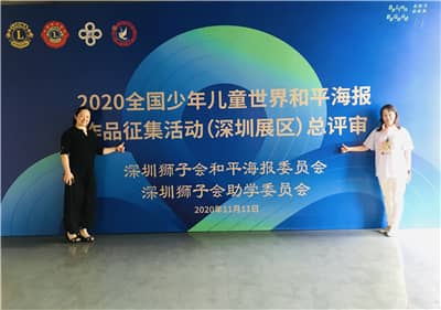 2020年11月11日,深圳狮子会在南山区太子湾学校中学部举行“服务创和平”2020·全国少年儿童世界和平海报深圳展区作品评审活动。5名美术界专业人士受邀参加评审活动,共评审出123幅获奖作品。