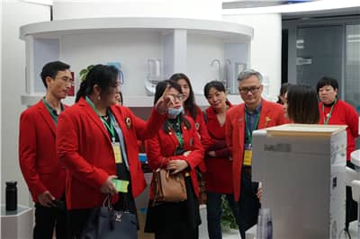 下午1点半,狮友们准时抵达水圣科技,在工作人员的带领下参观了水圣科技展厅。水圣科技深耕18载发展历程,坚持将水做到极致的精神,让狮友们纷纷感到折服。接着,狮友们参观了让学生喝上健康水的BOT健康校园成果展,并参观体验了高科技净化水设备。