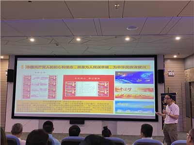 中国集邮总公司特约讲师、深圳市集邮协会宣讲师黄立新应邀作《可爱的中国——邮票上的党史》主题讲座。讲座以“红色题材邮票”为载体,用“百年征途波澜壮阔”、“雄关漫道真如铁” 、“社会主义建设——人生正道是沧桑”、“改革开放——长破浪会有时”四个篇章,生动、直观、系统地讲述了中国共产党开天辟地、改天换地、翻天覆地、惊天动地的发展历程,讲述了中国共产党带领全国人民从苦难走向辉煌、从贫穷走向富强的光辉历程,讲述了革命先驱舍生取义的历史故事以及其所展现的革命精神和气节。