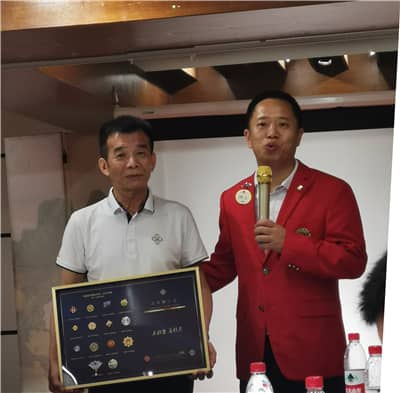 卢志强会长发表讲话,并为王燕荣队长、候任队长高艺珊、魏欣新主席赠送暖心的礼物。卢志强会长代表区会为创队队长赖新友颁发服务队“灵魂人物奖”,奖品是全国各地狮子会徽章组成的牌匾,实至名归,大家用热烈的掌声表示祝贺。