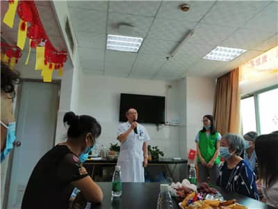在肿瘤科,社工带领大家动脑筋猜灯谜,现场气氛随之高涨,身体和大脑同时运动;病友积极参加投壶的小游戏,展现了手眼的高度协调。手作花灯祈祝福的环节,社工给病友分发具有中秋特色的月亮、花朵、星星形状的花灯材料,大家积极动起手来,不仅完成自己的作品,还相互协作,帮助其他的患者制作,促进了病友之间的友谊。制作完成后,大家开心地提着亲手制作的花灯合影。会后,狮友们给病友送上了月饼,祝福他们节日快乐,早日康复。