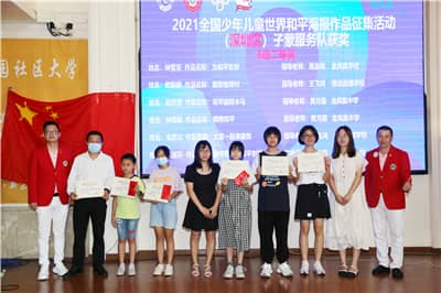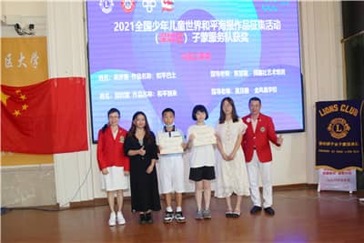 在令人心潮澎湃的颁奖环节,在场领导狮友为在2020-2021年度全国儿童和平海报作品征集活动中获奖的单位及个人颁发荣誉证书。全体人员携带证书合影留念。