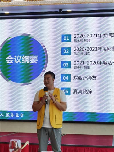 甄永前上届队长向到会的狮友介绍并回顾了长远服务队2020-2021年度参与开展的各项活动及服务队的发展概况。2020-2021年度召开会务活动20次,开展服务活动28次,会员参与服务416人次,服务经费42.7万元,会员保留率100%。每场活动的照片都纪录了狮友们在公益活动路上实实在在的奉献,感召狮友更多地践行“四出”精神。