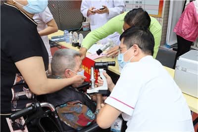 活动在由深圳狮子会、南园街道办、埔尾村委、深圳大学总医院共同组织的志愿者团体的协同工作中,井然有序地进行,安全、迅速、高效,领导、嘉宾们都加入了活动中,一起为老人服务。老人们表现出了非常高的秩序精神,在志愿者指引下陆续完成了视力检测、眼底检查,并领取到适配的眼镜,开心地离开活动场地,部分老人还与志愿者合照留念。