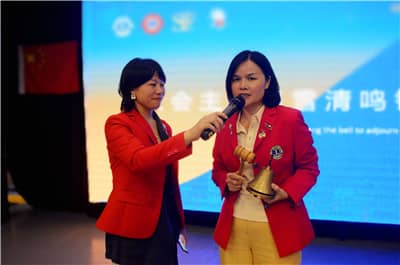刘军队长对新安服务队换届典礼做总结,感谢总统筹吴金枝四处奔波筹集拍品并爱心举牌,感谢张媛媛、温雪清、杨秋菊等狮友的大爱担当。