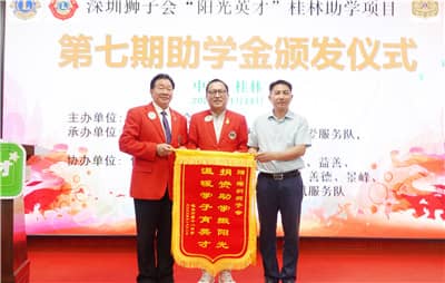 彭道坚会长表示,“阳光英才”助学项目是深圳狮子会的一个品牌服务项目,在深圳狮子会地王服务队的牵头下,在一百多支服务队的大力支持下,深圳狮子会“阳光英才”助学路上取得了骄人的成绩。自2016年第一期在桂林落地以来,至今一共举办了七期,资助学生162人。他希望受资助的学子自强自立,刻苦攻读,成为对国家和社会有用之人,并号召更多社会爱心人士关注低收入家庭的学子,帮助他们成长成才。最后,他对桂林市政府、主管部门和第十八中学对“阳光英才”助学项目的高度重视和大力支持表示感谢。同时,他对参与本助学项目的全体成员认真、负责、持之以恒的助学服务态度表示高度的赞扬和肯定。