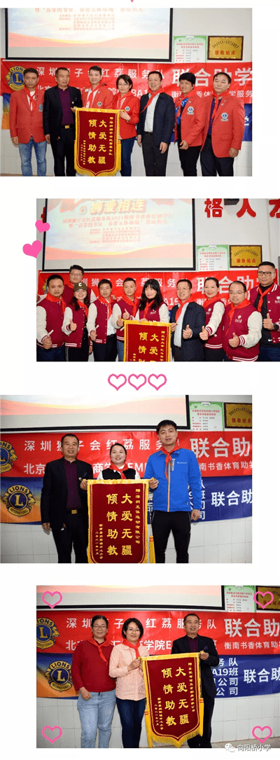 为期四天的湖南助学行顺利结束。深圳狮子会红茘服务队狮友及爱心人士的善举,受到当地教育局、学校领导及全体师生的高度赞扬。校方表示全体师生将秉承关怀而奋起,化帮扶为力量,发奋图强,创造佳绩,以此来回报深圳狮子会及爱心人士的厚爱。