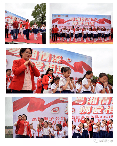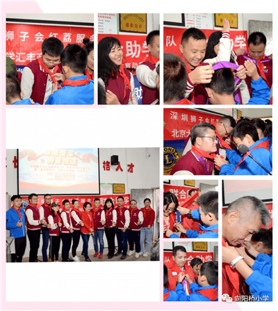 当日,向阳小学校长及师生冒雨列队欢迎。捐赠仪式上,湖南向阳小学校区负责人罗种棉代表全体师生致欢迎词,校长罗小成致感谢词。罗校长对深圳狮子会及爱心人士的无私善举致以崇高敬意,学校全体老师将发扬传统,努力工作,用责任、爱心、热情和知识培养好下一代。湖南助学活动执行主席尹姗、红荔服务队上届队长吴桂城,北京大学汇丰商学院EMBA19班代表胡剑雄、衡南县教育局副局长谢少春先后致辞。捐赠方红荔服务队代表上台向学校捐赠物资授牌,学校方接受捐赠牌。教育局领导和学校领导向捐赠承办和协办单位赠送锦旗,狮友及爱心人士接受锦旗。学校少先队员为狮友及爱心人士敬献红领巾。