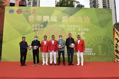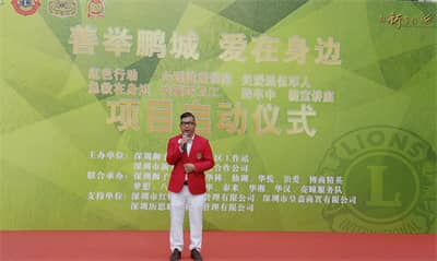 严伟民主席邀请现场狮友们上台共同见证,并隆重宣布深圳狮子会第五专区“善举鹏城·爱在身边”联合服务正式启动。