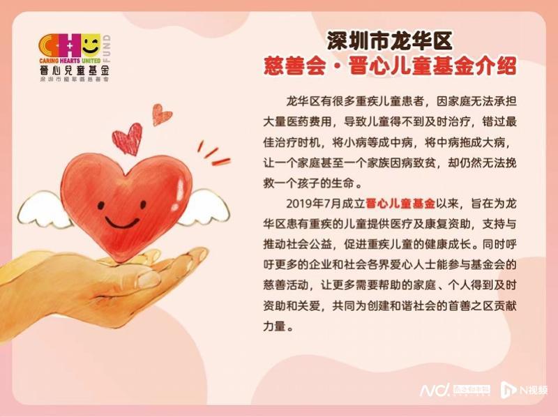 据了解,晋心儿童基金以“每个孩子都应该拥有美好与快乐的童年”为初心,旨在为深圳市龙华区患有重疾的儿童提供医疗及康复资助,支持与推动社会公益事业发展。自成立以来,已为龙华区内的多个重疾儿童家庭及残障人士提供了切实的物质资助和生活保障,把对儿童公益事业美好的期许转变为实际行动践行。