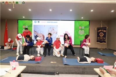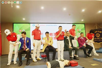 深圳狮子会应急委员会主席崔伟英介绍“急救在身边”项目。为提升市民的急救意识和急救技能,深圳狮子会应急委员会走进狮友家庭、企业、学校、社区开展“急救在身边”应急救护普及公益项目,向全社会普及急救、推广急救,从发起至今已培训11300余人次。现场,主教官雷高清讲授急救基础理论,并带领教练团队对实操内容进行分解,传授急救的要领。彭道坚会长、白永强主任、姚亮主任、袁伟茗主任倾力助阵,上台配合教练团队进行螺旋包扎、头部包扎的演练,别开生面的现场教学激发了狮友们学习急救知识的热情。