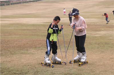 聋人朋友们被分成5组,在狮友的陪伴下,正确穿戴滑草装备,做好安全防护措施,由教练示范,工作人员一对一教学,大家坐稳抓牢在滑草车上从草坡上往下滑,活动紧张刺激。聋童们最喜爱滑草撬,认真穿戴好草撬鞋和滑草刀,接受教练手把手的培训,很快就融入这片大草原,滑出优美的舞姿,清脆的笑声直冲山谷的云霄。