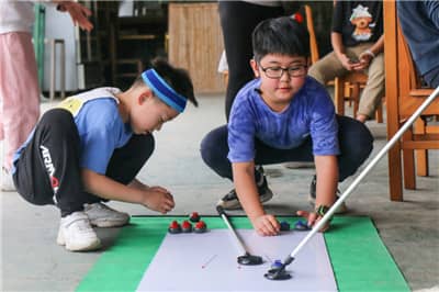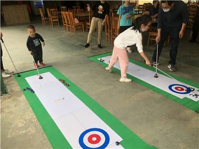 旱地冰壶是一个以团队为单位在平滑地面上进行的投掷性竞赛项目,通过让本方旱地冰壶球停在预先设定好的位置,或将对方旱地冰壶球击出,达到制胜的目的,是一项需要个人技术与团队战术配合的团建运动项目。旱地冰壶动静结合,注重技巧,对体能没有过多要求,但是会锻炼参与者身体的柔韧性和对力量的控制能力,同时锻炼了大脑的应变能力、判断能力、对时机的把握能力,通过团队合作,对目标树立和坚持、对胜利的渴望的高度统一,在比赛中展现的团结协作、战略战术及坚忍不拔的奋斗精神。而迷你旱地冰壶以其轻巧易携带容易上手而深得初学者的喜爱。
