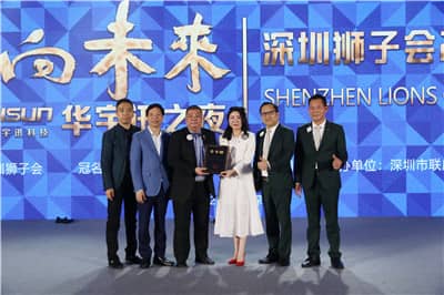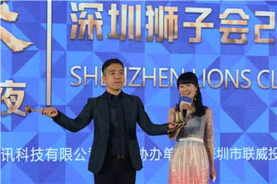 深圳市华宇讯科技有限公司联合创始人兼高级副总裁、深圳狮子会财务长徐秋彬致辞,他介绍了自己的狮路历程,感谢深圳狮子会对华宇讯科技有限公司的信任与支持,希望公司的公益慈善之心,生根发芽,与深圳狮子会一起,为社会贡献绵薄之力。彭道坚会长、聂向东第一副会长为晚会冠名单位——深圳市华宇讯科技有限公司,为协办单位——深圳市联威投资发展有限公司颁发奖牌。