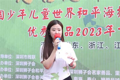 2023年4月21日,全国少年儿童世界和平海报作品征集活动暨南中国区优秀作品2023年首届联展深圳站开幕式活动在深圳市南山区深圳湾体育馆子非鱼艺术馆举办。本次活动由深圳市残联指导,深圳狮子会主办,深圳狮子会和平海报委员会、茗家善品、里程、中心区、上步、鹏爱、主会服务队承办,深圳狮子会春天、子蒙、星火、南海、泰山、狮爱足球、景峰、观澜、锦绣、华天、善德、益田、华汉、八卦岭、景田、盐田、正道、泊爱、小同、华南、天恩、新安、大地、松明服务队协办,深圳市慈善会、操应旺艺术公益基金等单位支持。深圳狮子会会长彭道坚、纠察长连楚海、常务副秘书长于小萍,专区主席黄少芳、金倩、吴志坚,分区主席刘军、李薇,监事会秘书长温瑶丽,监事赵辉、陈群好,中狮联公宣委和平海报工作组南区副组长崔险峰、副秘书长兼总策划罗学斌,深圳狮子会和平海报委员会主席魏巧珠,执行主席余芳飞、董秀玲、张洛宁、张秀莲等110余名狮友及嘉宾参加活动。活动由余芳飞担任大会主席,王婷萱主持。