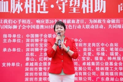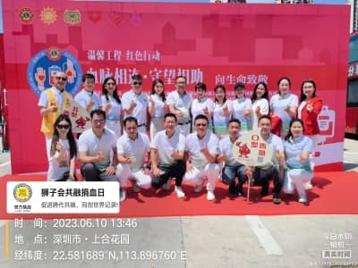 2023年6月10日,“血脉相连 守望相助”向生命致敬——深圳狮子会与全国狮友联动开展2023年“温馨工程 红色行动”无偿献血活动启动仪式在福田区梅林卓越汇购物中心举行。活动由中国狮子联会指导,深圳狮子会、深圳市血液中心、深圳市宝安区中心血站、深圳市龙岗区中心血站联合主办。深圳狮子会以专区为单位设立6个活动专场、10个献血点,号召深圳狮友和全城市民积极参与此次公益献血活动,和全国狮友(含港澳303区)齐心协力缔造“联合国可持续发展目标世界记录”,为拯救生命做出一份贡献。