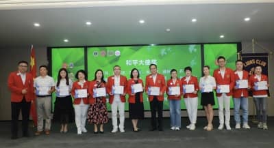 活动最后环节,向支持和平海报活动乐捐的服务队和机构颁发“橄榄枝奖”,向乐捐的个人颁发“和平大使奖”。无论是获奖的学生和老师,还是出钱出力支持和平海报活动的狮友,都是热爱和平、传播和平的慈善先锋,但愿和平星光,永远华彩绽放。