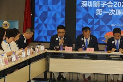 2023年8月15日,深圳狮子会2023-2024年度第一次理事会会议在深圳狮子会办事处大会议室召开。深圳狮子会会长聂向东、第一副会长谭飞、第二副会长赵辉、秘书长周文培、财务长温瑶丽、总务长周健、纠察长黄少芳、常务副秘书长李祎等26名理事出席会议。深圳狮子会监事长田王星、副监事长吴志坚,监事李晓峰、汤薛勇、陈旭生,会长助理钱琳、黄伟强,总干事马惠娟列席会议。会议由副秘书长林晓义担任大会主席,第三分区主席郭涛担任执行主席,由林晓义主持。