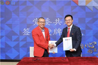 卓建律师事务所创始合伙人李国民致欢迎词。在全场人员的见证下,深圳狮子会党支部书记周文培与卓建律师事务所党委副书记张金寿签订了《结对共建协议书》,双方互相授牌。