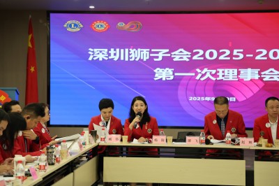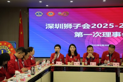 2025年9月20日,深圳狮子会2025-2026年度第一次理事会会议在深圳狮子会办事处召开。与会理事审议通过了“冲锋20+”——服务队增员达标冲刺计划、深圳狮子会2025-2026年度会员发展阶段奖奖励办法、深圳狮子会2025-2026年度嘉许方案,通报了内蒙古包头市“科技助残”服务项目情况、第62届东亚及东南亚年会事宜、2025年7-8月行政经费和服务经费执行情况、会费收缴情况、深圳狮子会致敬会暨就职典礼预结算情况、蜂巢计划、第七届华狮节惯蛋联赛和三人篮球赛活动等事宜。