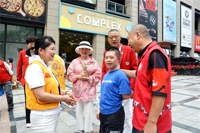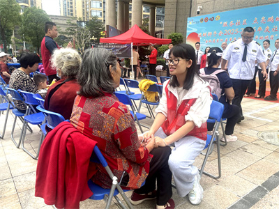 活动现场,赵辉会长与特殊居民亲切交流,亲手赠送艾草贴,以声声问候传递重阳佳节的深情厚意。他在随后的讲话中,以重阳传统为引,向社区长者与残疾人朋友致以节日祝福,强调“敬老助残”既是中华传统美德,也是公益初心,期望通过此次活动将健康关怀与节日温情送达每一位居民。