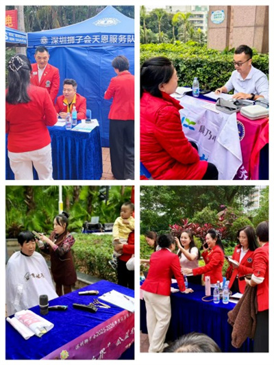 2025年12月31日,深圳狮子会2025-2026年度社区服务委员会围绕“服务社区 点亮鹏城”主题,在福田区区金碧社区广场开展迎新年关爱活动。活动向社区居民免费提供助残义剪、视力检查、经络推拿、皮肤检测、修眉、心脏检测、公益宣讲等多个便民项目,向社区居民捐赠1批艾草贴,投入服务经费1万元。