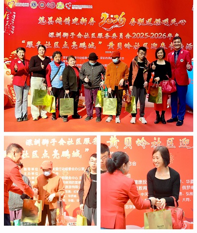 2026年2月6日,金马迎春添暖意,公益同行护民生。在马年春节即将来临之际,为深入社区服务、传递新春祝福,深圳狮子会2025-2026年度社区服务委员会围绕“服务社区 点亮鹏城”主题,在罗湖区黄贝岭社区开展迎新春活动,为居民带来一场融合健康守护、便民服务与文化惠民的公益盛会,让邻里温情在冬日蔓延,让新春福气浸润鹏城街巷。活动向社区居民捐赠1批蛋白粉、新年礼品、艾草贴,投入服务经费2万元。