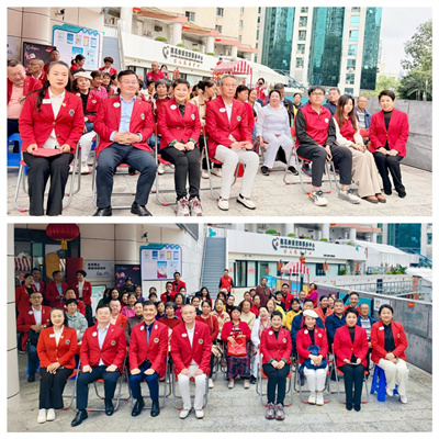 深圳市福田区狮岭社区党委副书记陈峰、主办岗王小婷、老年人协会会长马建民,深圳狮子会会长赵辉、总务长郑和华、第八分区主席王宁,会长特别助理、社区服务委员会主席魏欣新,筹款工作部副部长朱道英、糖尿病预防宣教委员会主席王成、集邮俱乐部执行主席陈欣、脑卒中委员会执行主席左迪群、景峰服务队队长吴燕、前程服务队队长高巍、泊爱服务队队长李欣鸿、益善服务队队长邵荣妹等服务队队长代表参加活动。活动由魏欣新担任大会主席,高高主持。