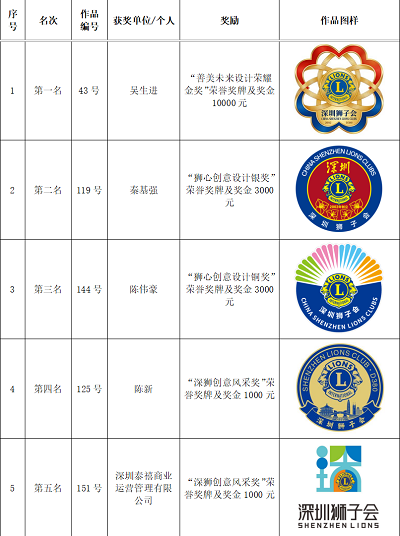 由深圳狮子会会员以无记名投票方式,从3件作品中选定1件得票最高的作品为候选作品。